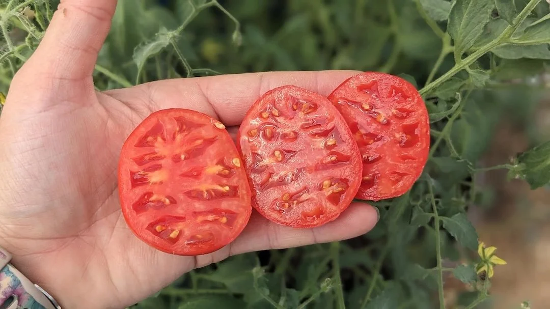 ‘3945’ was found on a battlefield during WWII and grown in Pittsburgh for 70 years. It’s a medium sized slicer with great flavor.